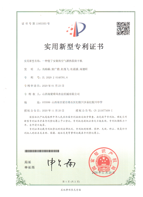 空氣能熱泵烘干能源循環(huán)利用裝置